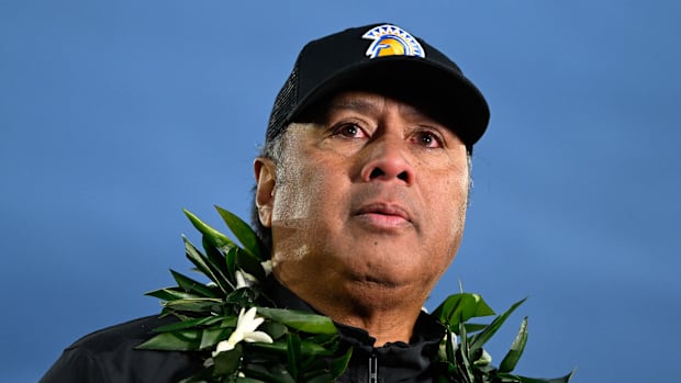 Nov 29, 2024; San Jose, California, USA; San Jose State Spartans head coach Ken Niumatalolo stands on the field after their win over the Stanford Cardinal at CEFCU Stadium. Mandatory Credit: Eakin Howard-Imagn Images / Eakin Howard-Imagn Images